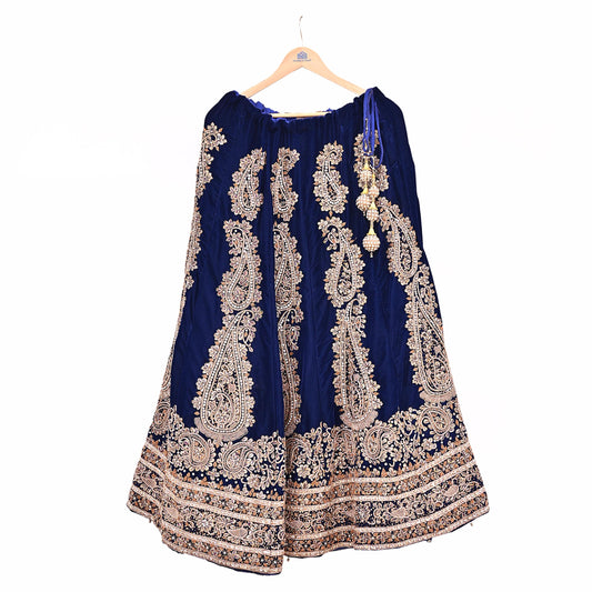 Manish Malhotra Blue Velvet Lehenga Skirt Heavy Zardozi Dabka Embroidery Indian Bridal Wear, Designer Couture Wedding Outfit