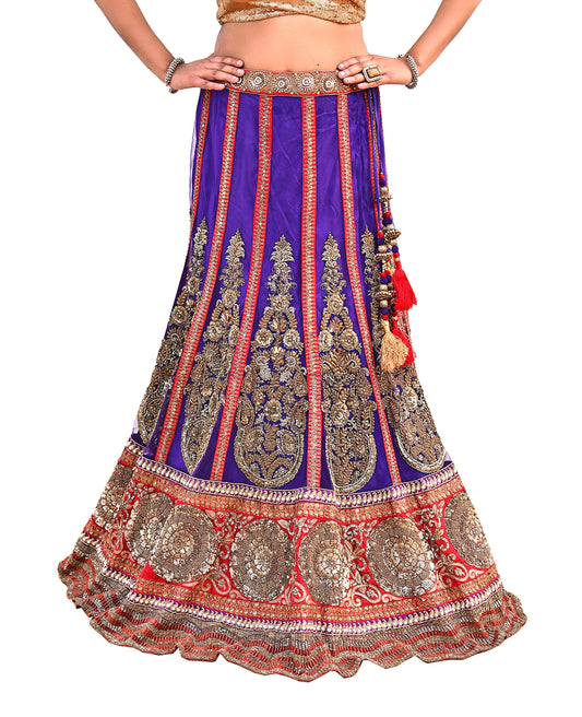 Indian New Heavy Purple & Maroon Colored Mesh/Net Hand Embroidered Lehenga Skirt By Designer Sabyasachi Bridal Wear