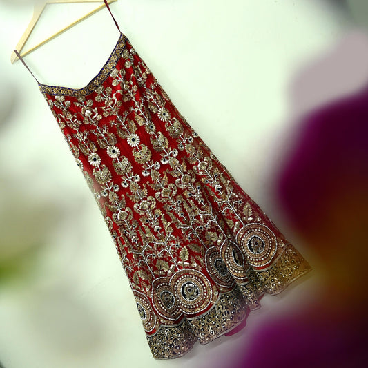 Indian Heavy Wedding Red Net Hand Embroidered Lehenga/Skirt Designer By Anamika Khanna Bridal Wear Zardozi/ Dabka Bollywood skirt