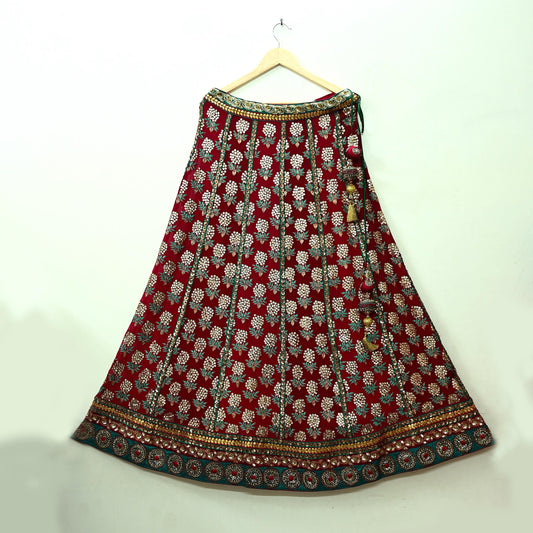 Indian Vintage Heavy Maroon Pure chanderi Silk Hand Embroidered Lehenga Skirt By Designer Sabyasachi Bridal Wear Dabka/ Zardozi