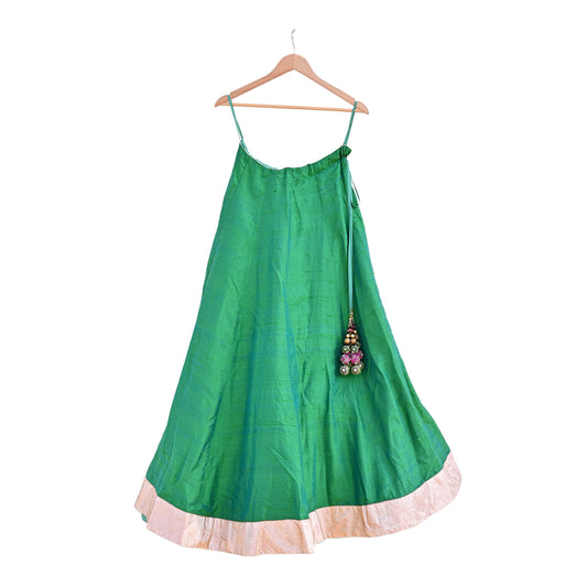 Anamika Khanna Deep Greem Raw Silk Skirt Heavy Embroidered Bridal Lehenga Bottom Designer Wedding Couture Outfit