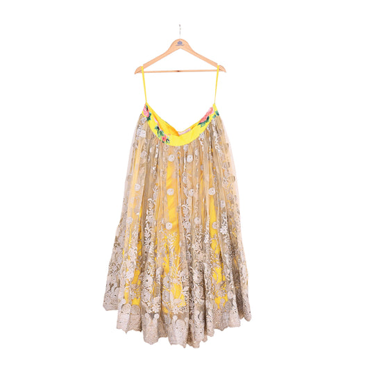 Party wear Heavy Yellow Net Hand Embroidered Lehenga Skirt by Designer Shrutika Bridal Wear Fashion