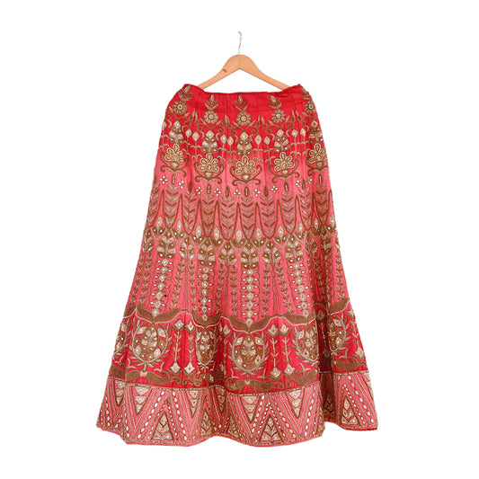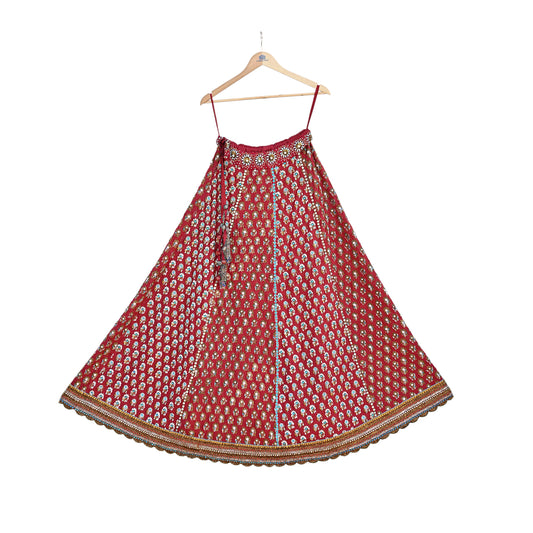 Indian Vintage Red Raw Silk Bridal Skirt, Gota patti Work Lehenga, Hand Embroidered Wedding Wear, Designer Abu Jani Festive Outfit