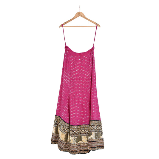 Indian Vintage Heavy Rani PInk Pure Crepe Silk Hand Embroidered Lehenga/Skirt By Designer Sabyasachi Bridal Wear Dabka/ Zardozi