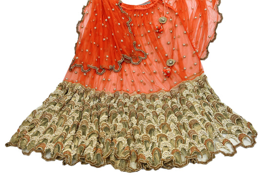 Indian Sari Heavy Green & Orange Net/Mesh Hand Embroidered Lehenga/Skirt Designer Nandita Thirani Sarees Ethnic Wedding/Bridal Sarees