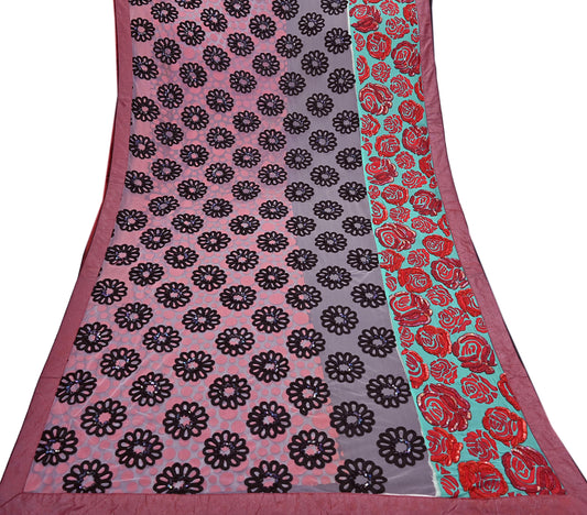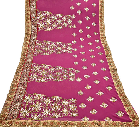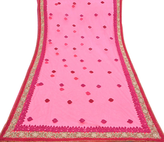 Indian Pre-owned Sari Pink Pure Georgette Silk Hand Embroidered Anamika Khanna Designer Sarees Ethnic 6Yd Sewing Wedding Sarees