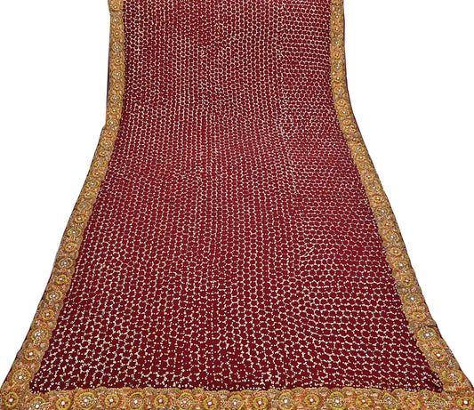 Indian Heavy Sari Maroon Pure Georgette Silk Hand Embroidered Sarees Designer Sabyasachi 6Yd Sewing Ethnic Bollywood party wear saree