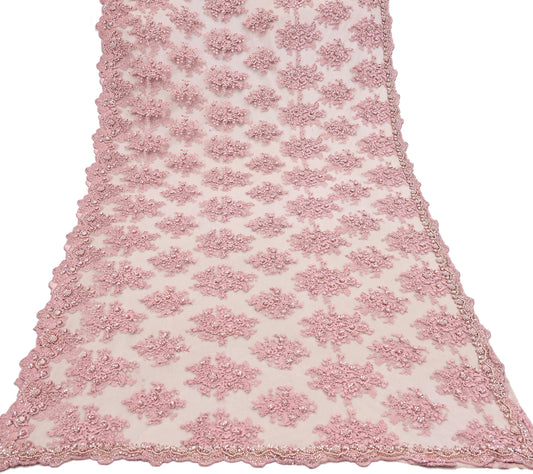 Indian Pre-owned Sari Pink Net/Mesh Hand Embroidered Anamika Khanna Designer Sarees Ethnic 6Yd Sewing Zardozi/Dabka Zari Wedding Sarees