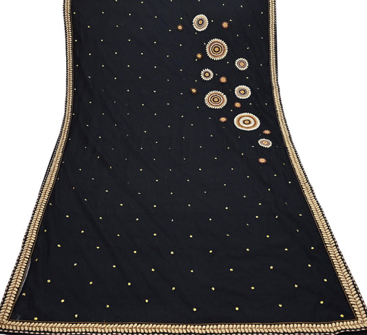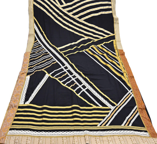 Indian Pre-owned Saree Black Pure Georgette Silk & Net Hand Embroidered Sabyasachi Designer Sari 6Yd Soft Ethnic Bollywood Party saree