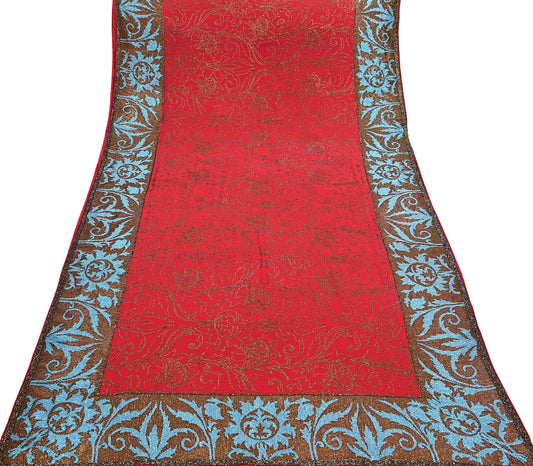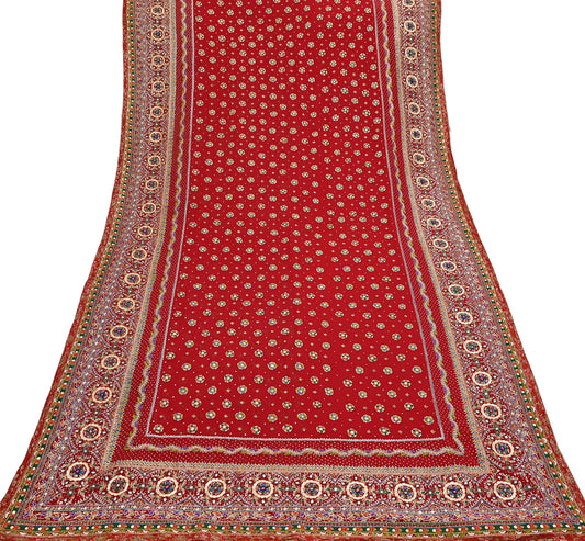 Indian Pre-owned Heavy Sari Red Pure Georgette Silk Hand Embroidered Sarees Designer Abu Jani 6Yd Sewing Ethnic Sarees