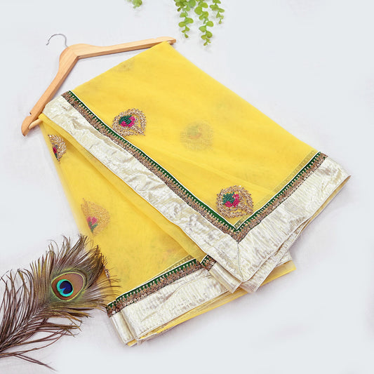 Pre-Owned Sari Yellow Peach Net & Pure Georgette silk Hand Embroidered Designer Manish Malhotra Sarees Ethnic Zardozi Zari Wedding Saree