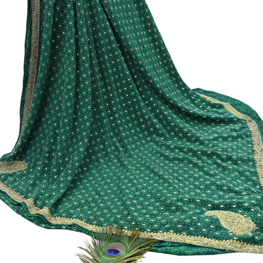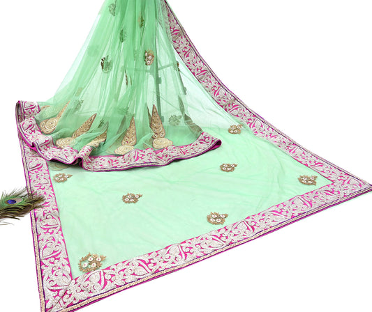 Indian Pre-owned Heavy Sari Sage Green Pure Georgette Silk Hand Embroidered gota patti Sarees Designer Abu Jani 6Yd Sewing Ethnic Sarees