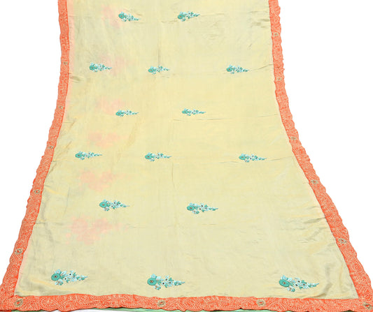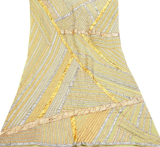 Indian Vintage Yellow Saree Pure Chiffon Silk Pre-owned Hand Beaded Abu jani Designer Sari Fabric 6-Yards Soft Ethnic Bollywood Party sarees