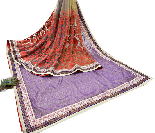 Indian Pre-owned Sari Purple Net/Mesh Hand Embroidered Anamika Khanna Designer Sarees Ethnic 6Yd Sewing Zardozi/Dabka Zari Wedding Sarees