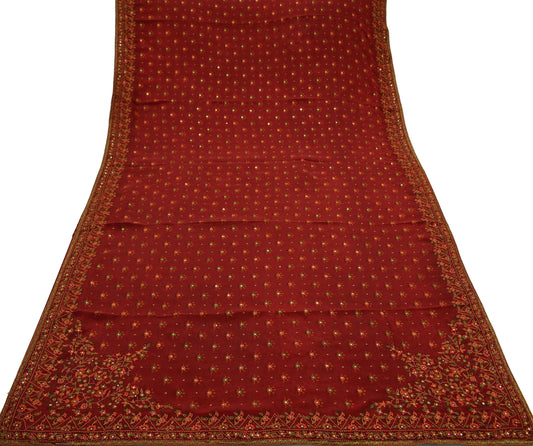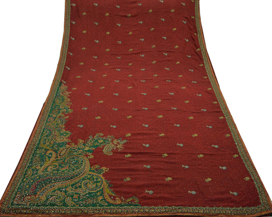 Indian Vintage Rusty Saree Pure Crepe Silk Pre-owned Hand Beaded Ritu's Boutique's Design Sari Fabric 5Yd Soft Ethnic Bollywood Party sarees