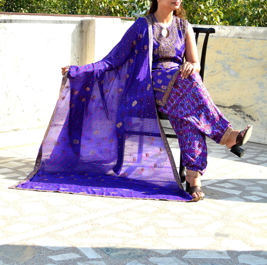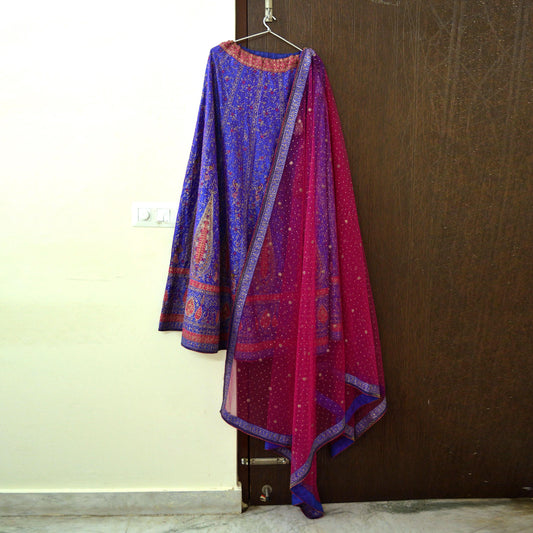 Indian Pre-owned Purple Pure Silk Hand Embroidered Ritu Kumar's Designer 3 piece Suit Set Kurta/Dupatta/Salwar Ethnic Bollywood Party Wear