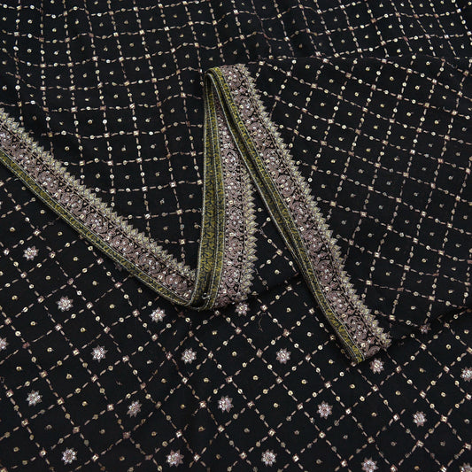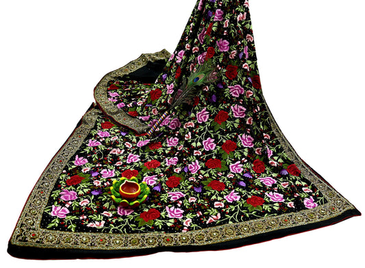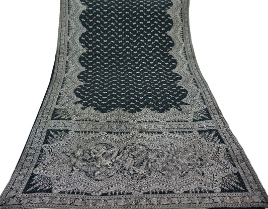 Indian Pre-owned Heavy Sari Black Pure Georgette Silk Hand Embroidered Sarees Designer Abu Jani 6Yd Sewing Ethnic Bollywood Designer Sarees