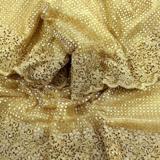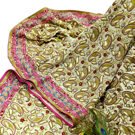 Indian Pre-owned Heavy Wedding Dupatta Golden Pure Tissue Silk Long Stole Hand Embroidered By Designer Abu Jani Scarves Bridal Veil