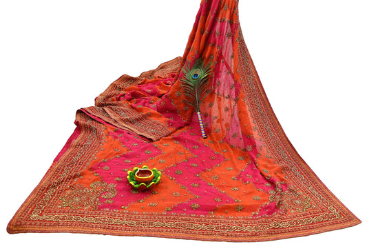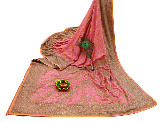 Indian Vintage Pink & Orange Saree Pure Georgette Silk Pre-owned Hand Beaded Ritu Kumar Designer Sari 6Yd Soft Ethnic Bollywood Party sarees