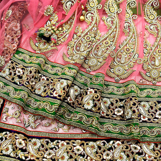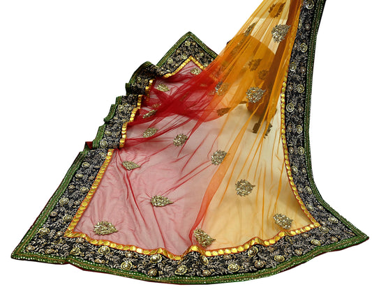 Indian Pre-owned Heavy Wedding Dupatta Net Mesh Long Stole Hand Embroidered By Designer sabyasachi Scarves Zardozi Dabka Bridal Veil