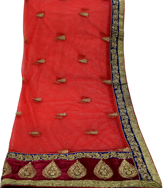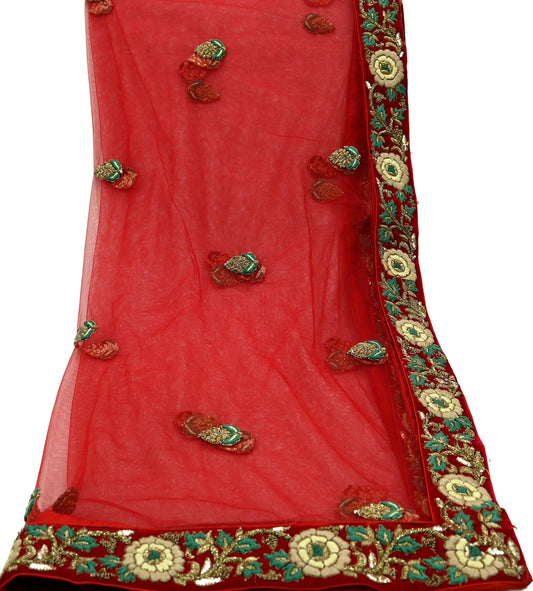 Indian Pre-owned Heavy Wedding Dupatta Red Net Mesh Long Stole Hand Embroidered Designer Sabyasachi Scarves Zardozi Dabka Bridal Veil