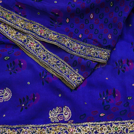 Indian Pre-owned Purple Pure Silk Hand Embroidered Ritu Kumar Designer Dupatta Ethnic Bollywood Party Wear