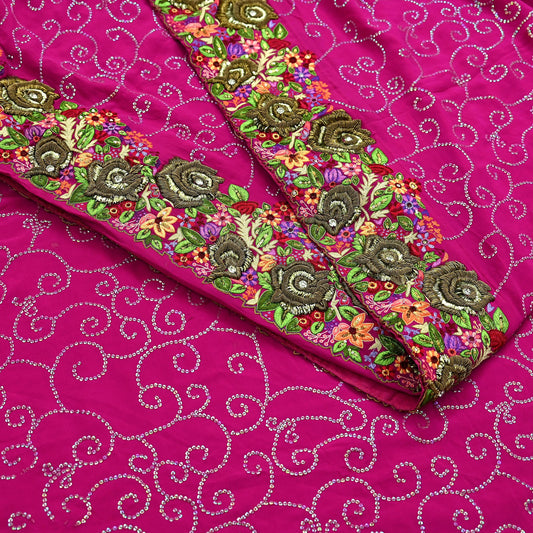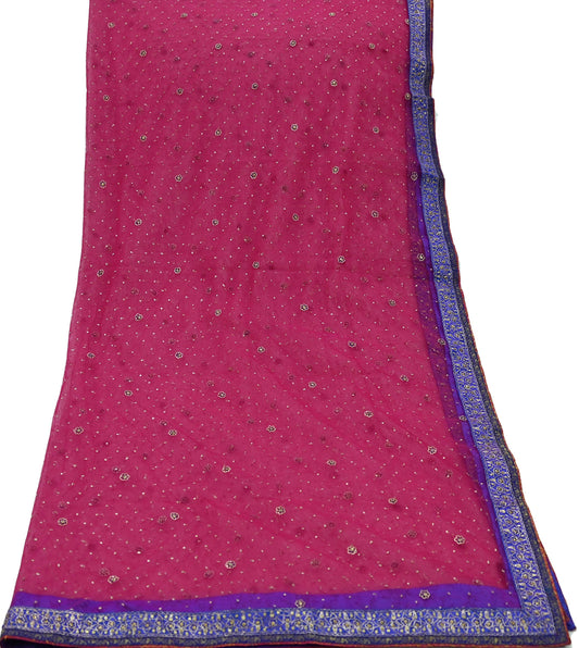 Indian Pre-owned Heavy Sari Rani Pink Pure Georgette Silk Hand Embroidered Sarees Designer Abu Jani 6Yd Sewing Ethnic Sarees
