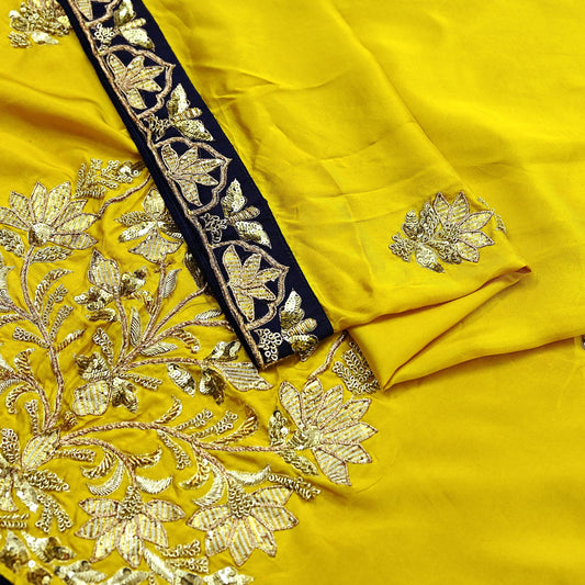 Indian Pre-owned Yellow Saree Pure Silk Hand Embroidered Sabyasachi Designer Sari 6Yd Soft Ethnic Bollywood Party saree Dress making Zardozi