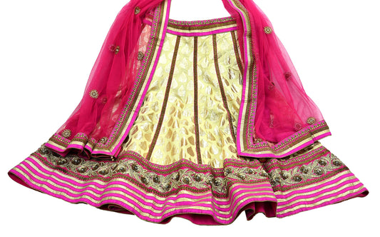 Indian Pre-owned Heavy Wedding Hand Embroidered Lehenga/ Dupatta Set By Designer Abu Jani Bridal Wear Net/ Pure Chanderi Cotton