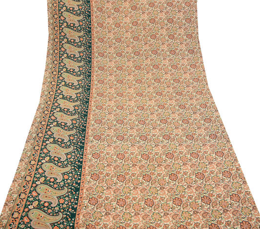 Indian Vintage Pure Silk Saree | Digital Printed Floral & Paisley Design | 5 Yards | Soft Craft Fabric for Dressmaking, Quilting, Upcycling