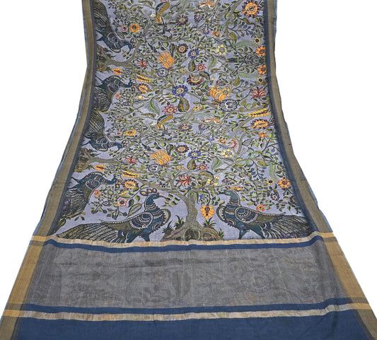 Indian Vintage Saree Gray Pure Khadi Silk Handloom Digital Printed Sari Craft Fabric 5yard Ethnic Wear Sari Dress making Crafting Upcycle