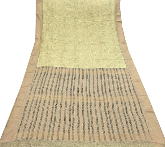 Women Vintage Sari Green & Yellow Pure Georgette Silk Digital Printed Saree Craft Fabric Sewing 6Yd Light Dress Making Geometric Crafting
