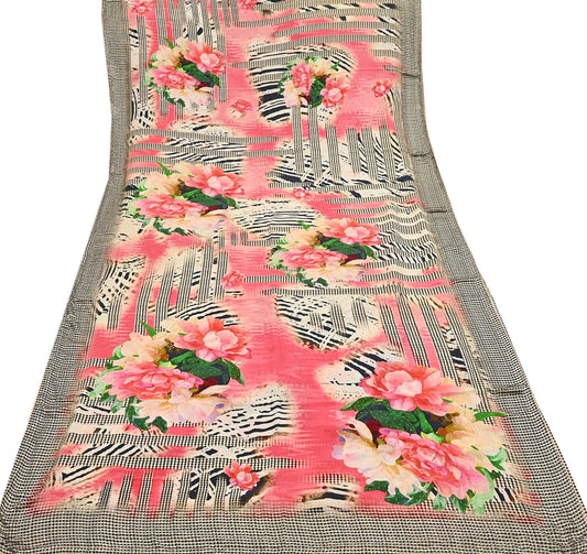 Indian Vintage Saree Gray & Black Pure Silk Digital Printed Sari 6yd Sewing Floral Soft Craft Fabric Dress Making Crafting Quilting