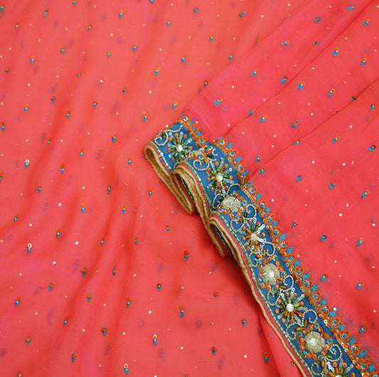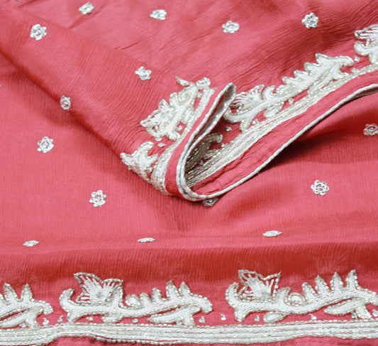 Indian Vintage Pink Dupatta Pure Georgette silk Long Stole Hand Embroidered Mukesh work Scarves Sequins Stole Zardozi/dabka