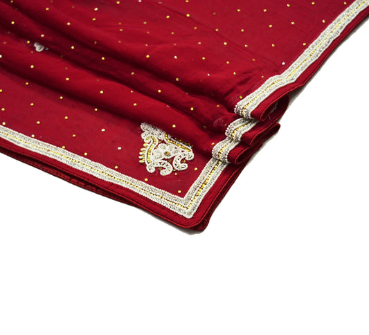 Indian Vintage Red Dupatta Pure Georgette silk Long Stole Hand Embroidered Scarves Sequins Stole Zari