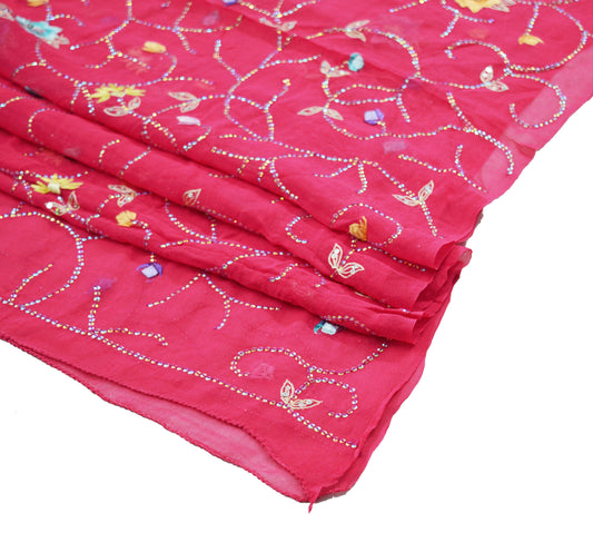 Vintage Pink Dupatta Long Stole Pure Georgette Silk Hand Embroidered Indian Scarves Veil Hijab Floral Sequins