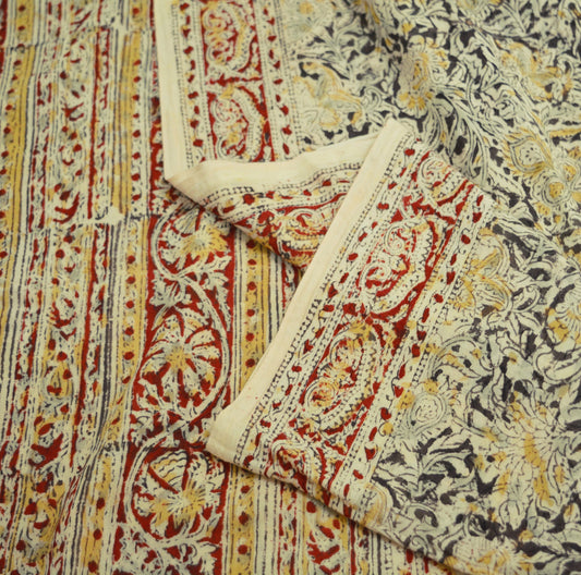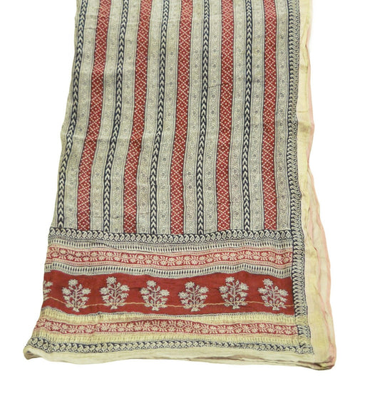 Indian Cream & Red Vintage Dupatta Long Stole Block Print Pure Chanderi Silk Indian Scarves Veil Golden Zari Soft Floral