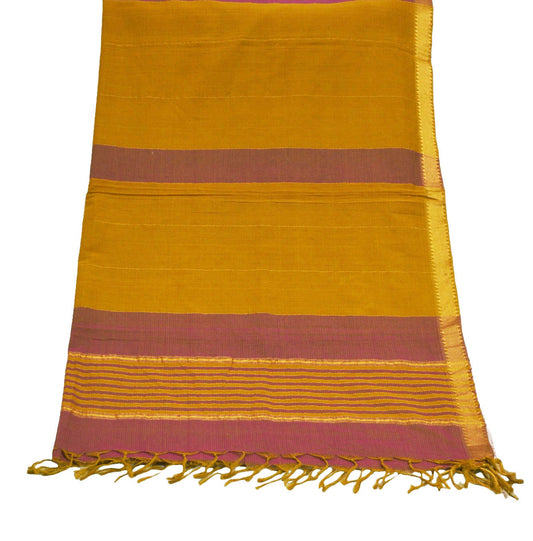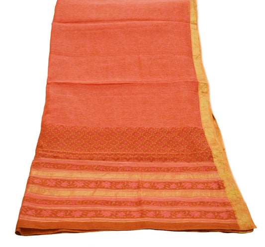 Indian Saffron Vintage Dupatta Long Stole Printed Woven Chanderi Cotton Indian Scarves Veil Golden Zari Soft Paisley Design