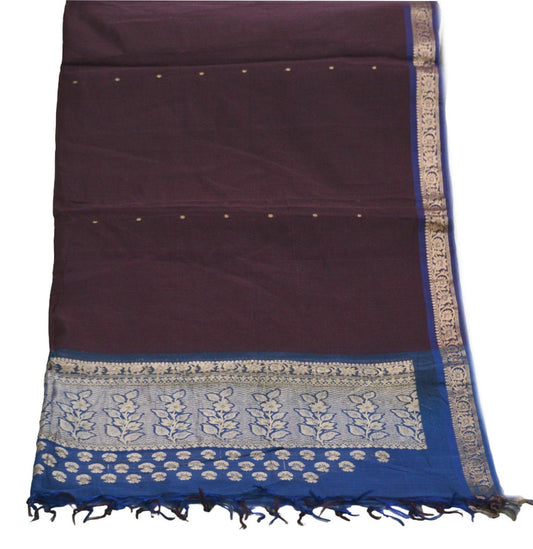 Indian Purple & Blue Vintage Dupatta Long Stole Woven Chanderi Silk Indian Scarves Veil Zari Soft Fringes Scarf Wrap Boho