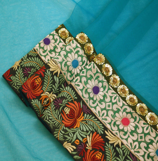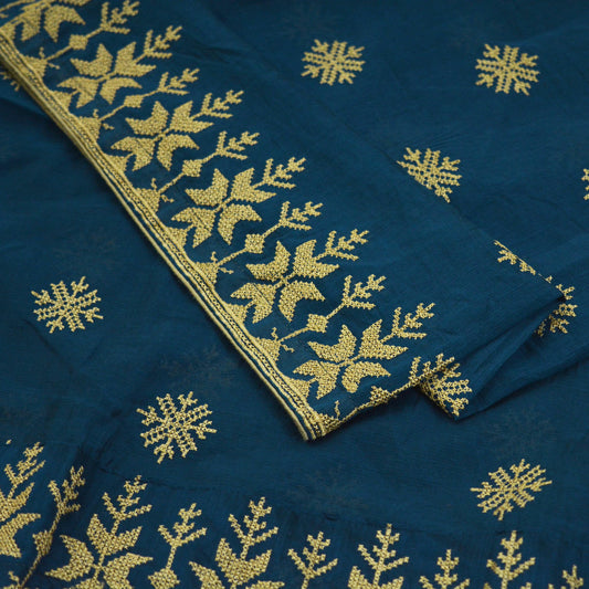 Indian Teal Green Vintage Dupatta Long Stole Hand Embroidered Blend Cotton Indian Scarf Veil Soft Floral