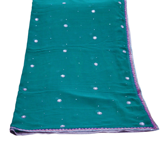 Indian Vintage Green Dupatta Pure Georgette silk Long Stole Hand Embroidered Mukesh work Scarves Sequins Stole Zardozi/dabka
