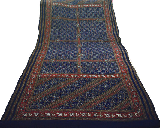 Vintage Brown & Blue Long Stole Pure Woolen Scarf Printed Dupatta Infinity Scarves Sarong Wrap Veil Woman Hijab Shawl Craft