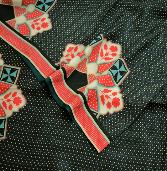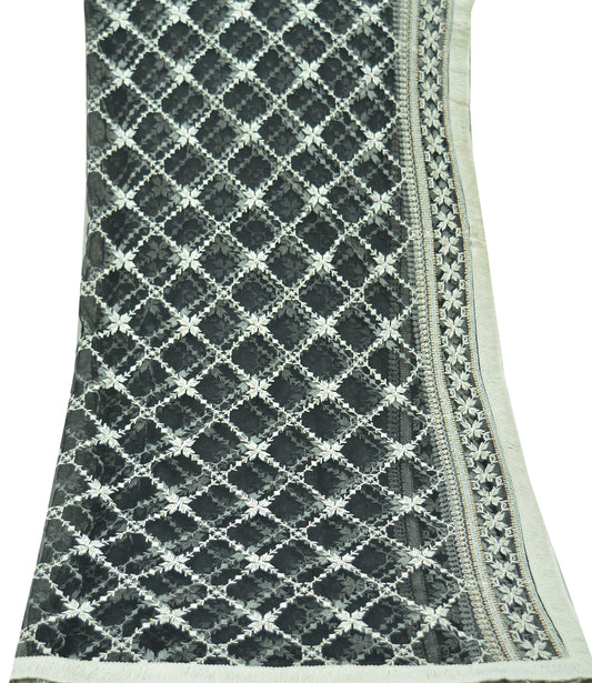 Women Indian Vintage Black Dupatta Long Stole Pure silk Printed Dupatta Veil Scarves soft Boho Wrap Floral Design