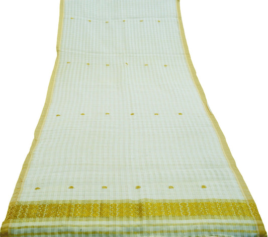 Indian White Vintage Dupatta Long Stole Hand Woven Art Silk Indian Scarves Veil Golden Zari