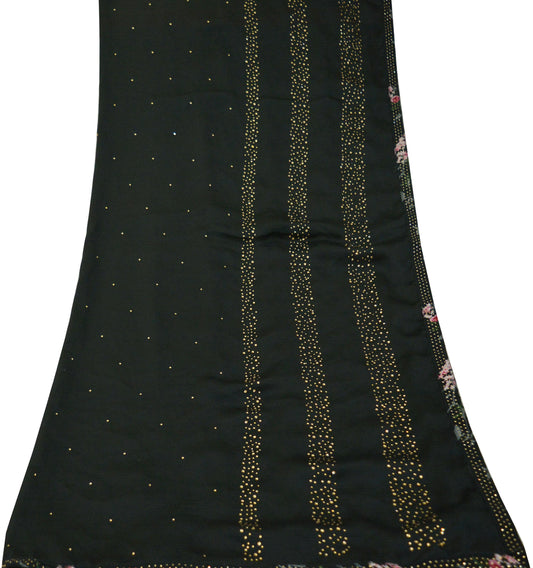 Indian Vintage Black Dupatta Long Stole Georgette Hand Embroidered Indian Scarves Veil Scarf Wrap Hippie Boho