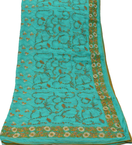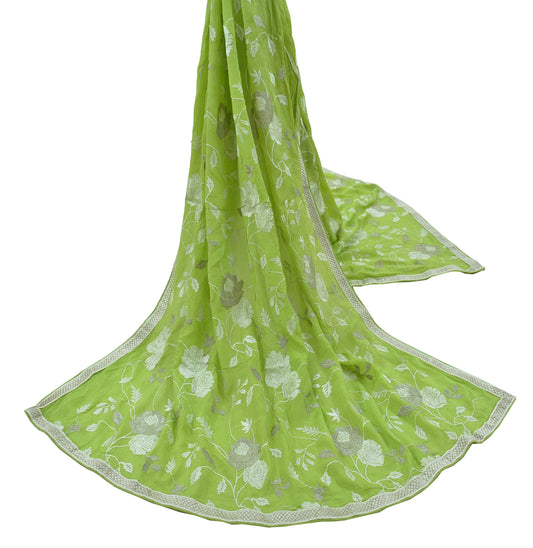 Indian Vintage Green Dupatta Blend Chiffon Long Stole Embroidered Scarves Floral Design Stole Veil Wrap