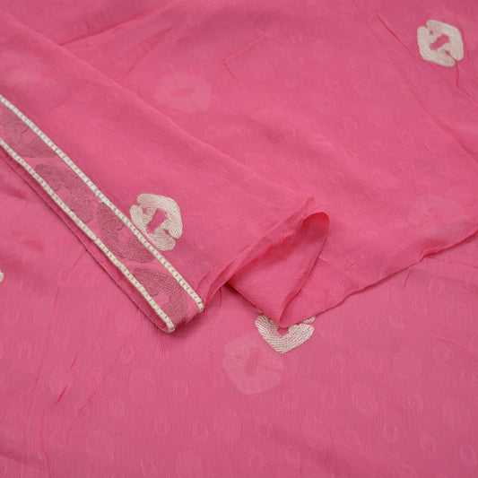 Indian Vintage Dupatta Pink Pure Georgette Silk Long Stole Hand Embroidered Scarves Floral Design Stole Veil Wrap