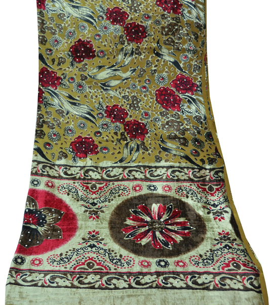 Indian Vintage Dupatta Green Long Stole velvet Brasso Scarves Veil Hijab Wrap Scarf Floral Boho For her For women's Bollywood stole
