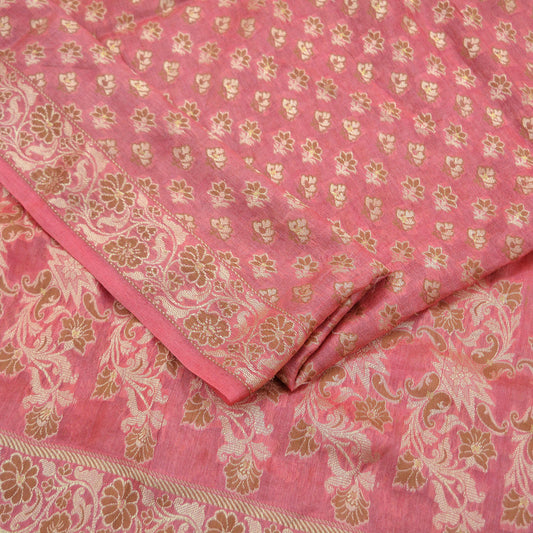 Indian Vintage Pink Dupatta Long Stole Block Print Pure Chanderi Silk Indian Scarves Veil Golden Zari Soft Paisley Design