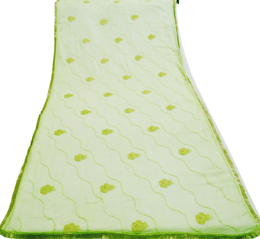 Indian Vintage Green Dupatta Blend Chiffon Long Stole Embroidered Scarves Floral Design Stole Veil Wrap